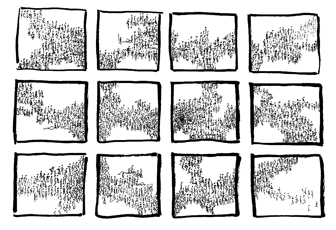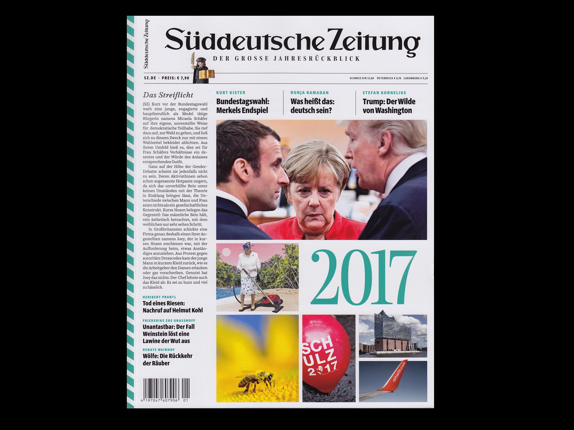 Den Jahresrückblick der Süddeutschen Zeitung begleitet er schon lange als Layouter. 2012 wurde das Magazin von Christian Tönsmann neu gestaltet. Es wurde konzentrierter und auch inhaltlich anders gewichtet. Mit mehr Raum für Typografie – im klassischen Satz, eng verflochten mit Bildern oder als originäres Gestaltungselement. Etwas, das zu Dennis Schmidt gut passte. Gestalten mit Typografie, nur mit Farben und Zeichen.
