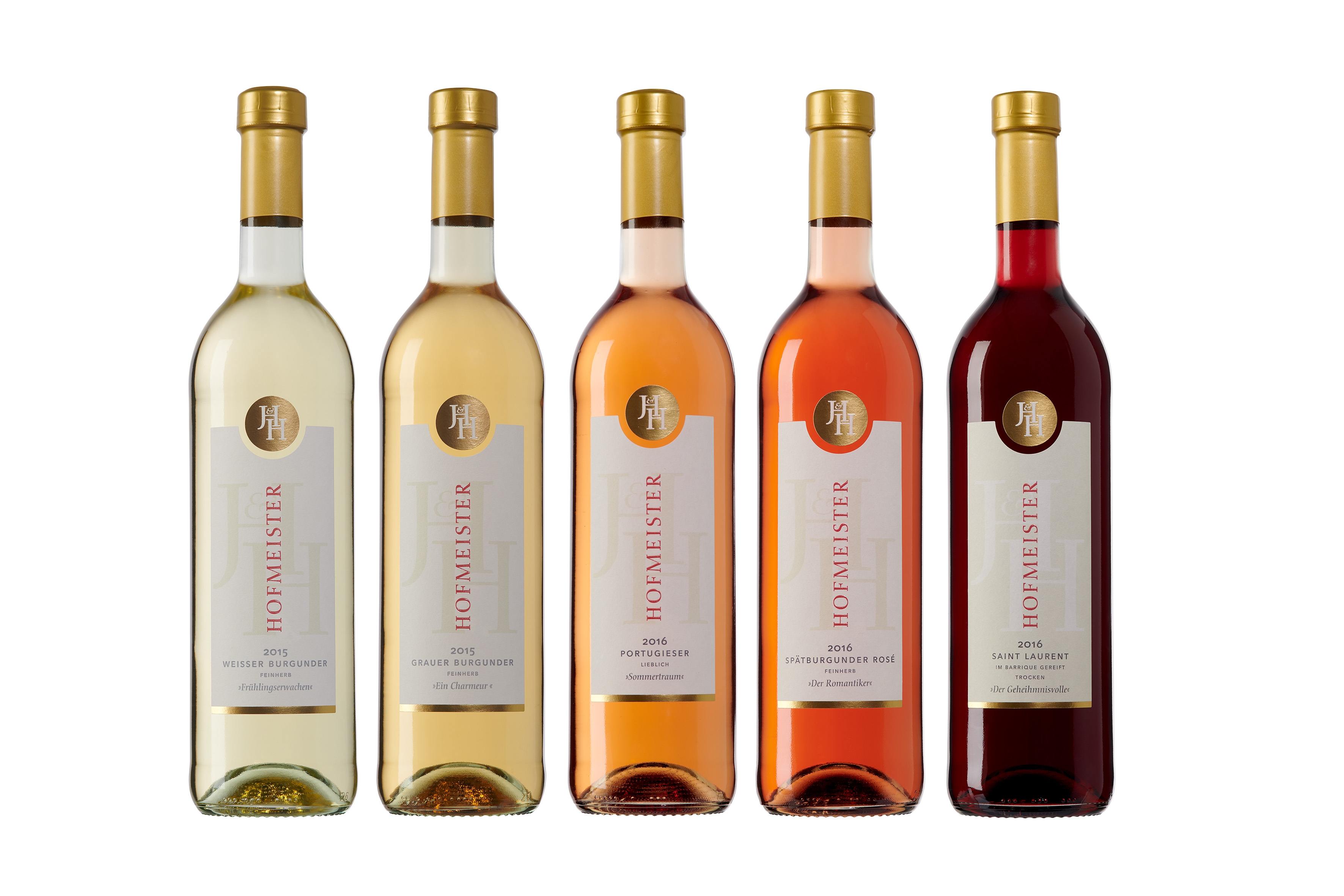 »Der Wein soll rausschauen können«, sagt die Winzerin Bärbel Hofmeister. Und die Farbe des Weins ist selbst ein Element der Gestaltung, was die Gestaltung stark verändern kann. Für Willisch, der während unseres Seminars Drucktechnik studierte und auch diplomierter Druckingenieur wurde, ist auch wichtig, dass auf den Weinetiketten mehrere Verfahren des Drucks und der Veredelung stattfanden: Digitaldruck HP Indigo, Reliefprägung mit transparenter Folie, Heißfolienpägung und Flexodruck.