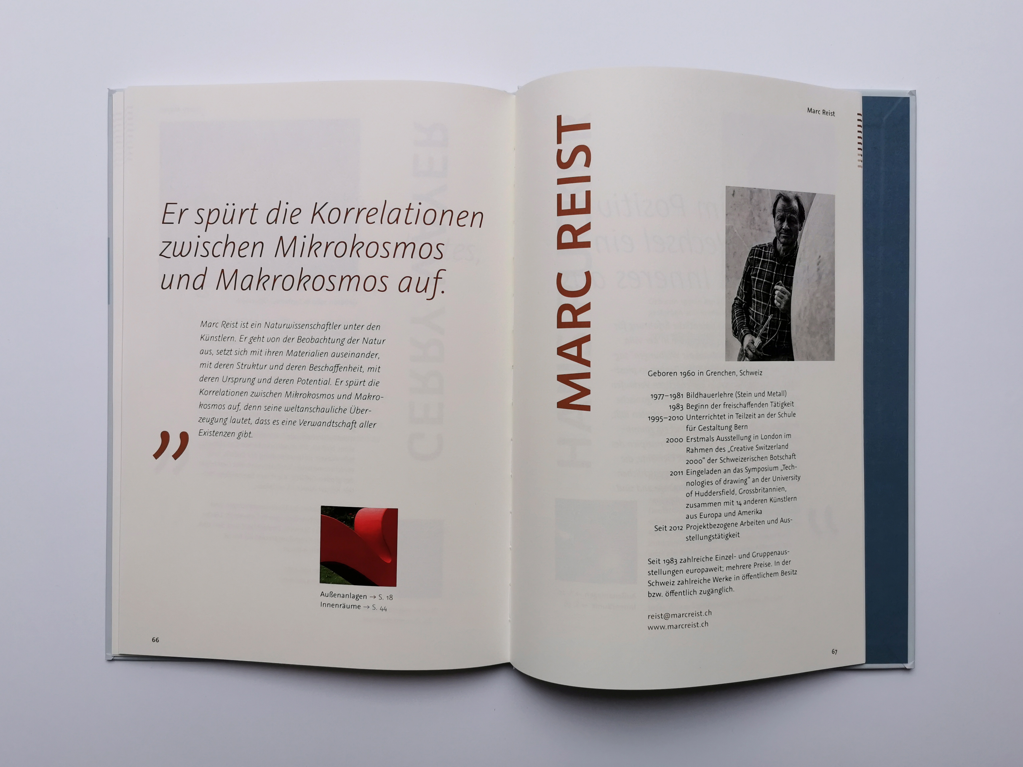 Alain Wohlfarths Unternehmen »richtungspfeil« in München hilft, dass »Kunden den Eingang finden« mit Beschilderungen zur Orientierung. Für ihn gibt es wichtige Orientierungen aus seiner Teilnahme am Seminar 2013 bis 2015: »Abseits des Bildschirms gibt es bei mir jetzt mehr Ausdrucke und ich präsentiere viel mehr in gedruckter Form, die auf Karton aufgezogen werden, damit die Kunden etwas in der Hand haben und vergleichen können oder es an die Stelle halten, wo es später realisiert wird. Diese intensive Auseinandersetzung mit anstehenden Projekten, eine umfangreiche Recherche und die daraus resultierende Herleitung wie es zu der Gestaltung gekommen ist habe ich früher nicht gemacht. … Ich bin persönlich gewachsen und konnte aus dem Seminar eine gehörige Wertschöpfung erzielen«.