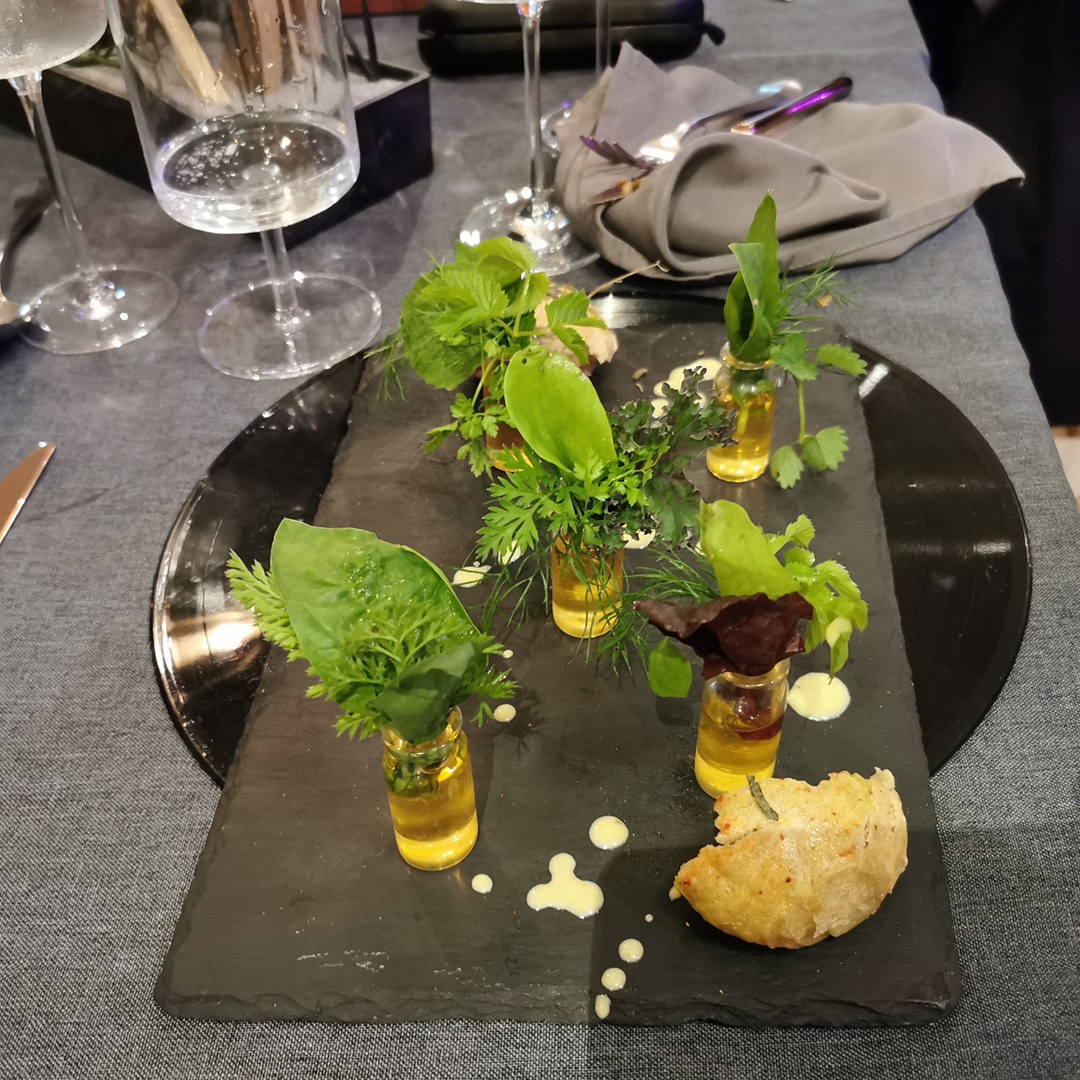 Gern würde ich auch hier noch verweilen, doch wieder geht es weiter. Zum Bahnhof, mit dem Zug nach Dessau. Nach dem Einchecken im Hotel – auch hier nicht ohne bemerkenswerte Einlagen des Serviceverständnisses – machen wir uns abends auf den Weg zu einem denkwürdigen Dinner. LPs als Tischsets, Schnitzel hängend am Galgen serviert, Salat in Form einzelner Blätter, in Glasphiolen gesteckt, die jede mit einem anderen Essig gefüllt sind – die Kreativität des Kochs ist unbeschreiblich. Das Beste: Das Essen schmeckt sogar. Und wir werden ausnehmend zuvorkommend bedient. Ein wunderbares Ambiente für angeregte Gespräche.