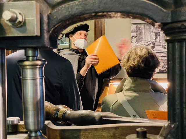 Ich würde gerne noch verweilen, doch schon geht es weiter. Ein erneuter Fußmarsch quer durch die wunderschöne Altstadt führt uns zur Pavillon Presse, ein Druckgrafisches Museum in einem der ältesten erhaltenen Häuser Weimars. Früher war es Teil eines Verlags- und Druckerei-Standort, heute zeigt ein Verein Druckformen, Schriften und Maschinen aus mehreren Jahrhunderten. Anschließend ist der Kopf gefüllt, der Bauch meldet sich. Beim anschließenden Essen machen wir erneut Bekanntschaft mit der interessanten Servicementalität vor Ort. Doch auch das kann uns nicht aus der Ruhe bringen, gibt es doch wichtigere Dinge zu diskutieren.