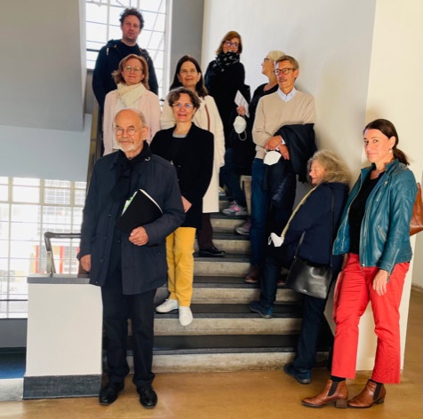 Diese Art des Dialogs begleitet uns durch die 4 Tage Exkursion in Weimar, Leipzig und Dessau. Wir, das sind 10 ehemalige Absolvent:innen des 2-jährigen Seminars „Typografie intensiv“, die Kursleiter:innen Rudolf und Dagmar Gorbach und ein buchbegeisterter Nachbar. Einige von uns kannten sich vorher durch den Kurs, andere lernen sich auf der Zugfahrt von München nach Weimar oder bei den angeregten Diskussionen im Laufe der Tage kennen. Das Programm ist voll gepackt, minutiös organisiert von Rudolf Gorbach. Ich steige Donnerstag gegen neun Uhr morgens in den ICE und bin gespannt.